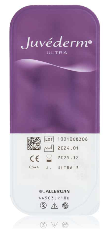 Juvederm Ultra 3 is a hyaluronic acid filler with a smooth and long-lasting formulation. Juvederm Ultra 3 is primarily used to fill moderate to deeper facial wrinkles that occur around the nose and the mouth: nasolabial folds and marionette lines. In addition, Juvederm Ultra 3 can also be used to enhance lip contour and lip volume. The product contains lidocaine to ensure a more comfortable injection.